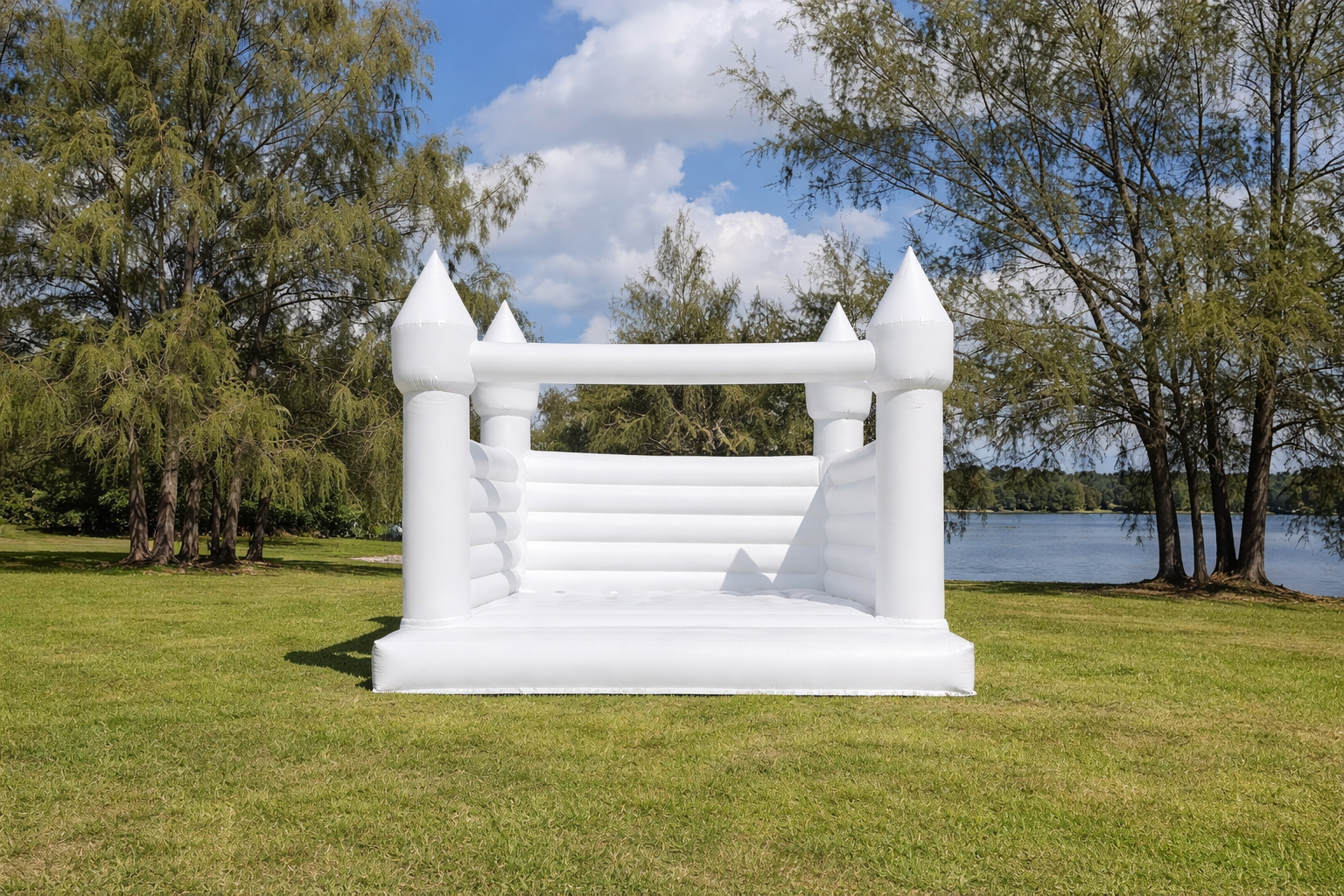 Discover the best bounce house rentals in Miami with Primrose Events. Our collection includes a modern white bounce house and a colorful slide bounce house, perfect for kids’ birthdays, family parties, school events and backyard celebrations.