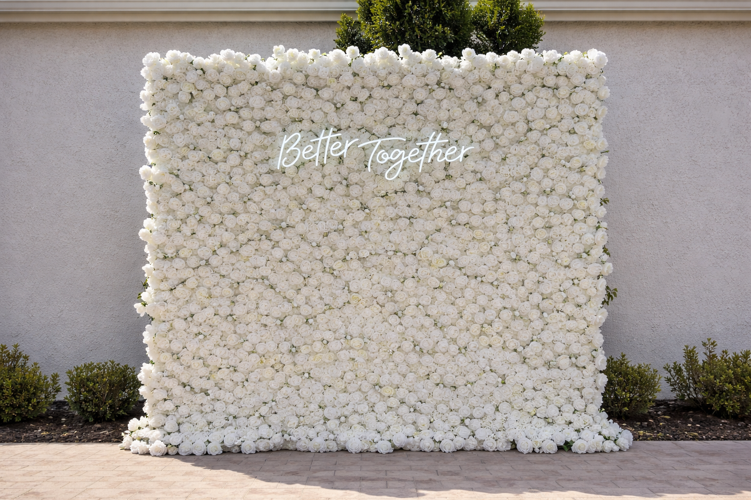 Our flower walls create elegant, photo-ready backdrops for weddings, baby showers, birthdays and content shoots. Choose from rich red or clean white blooms and pair them with custom signs, balloons or neon lettering to match your theme.